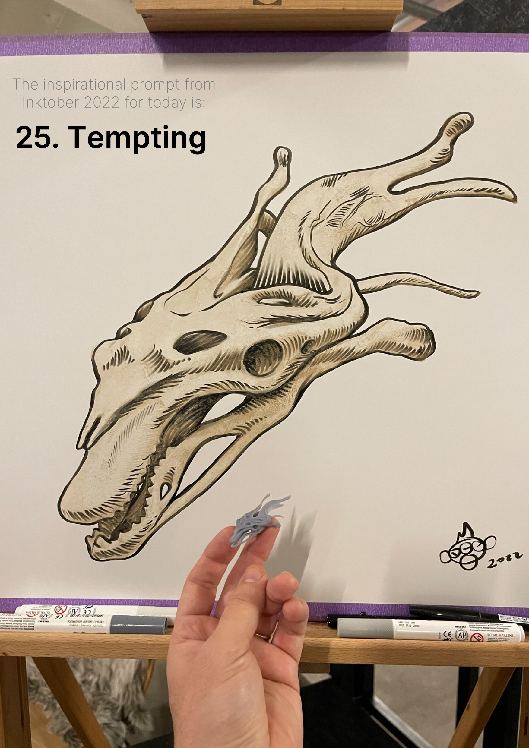 So today’s inktober - 2022 - day 4 - scallop - ink drawing was a bit special since my waifu gave me a tour of the #legopeoplehouse! That is located in the new LEGO Campus building in Billund. So I had to build a tall phone holder with lego bricks to do the timelapse for today!